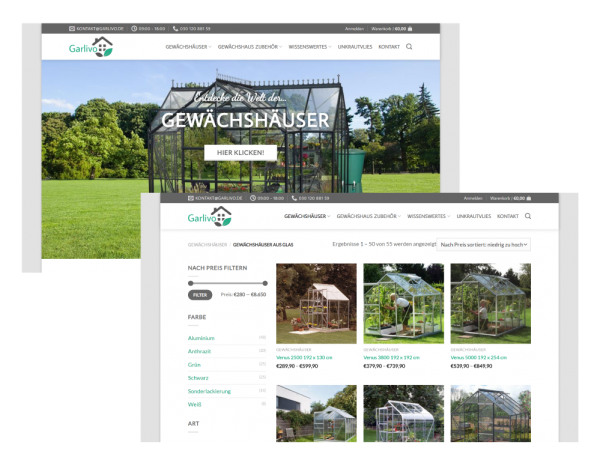 Onlineshop für Gewächshäuser und Gartenprodukte auf Wordpress-Basis