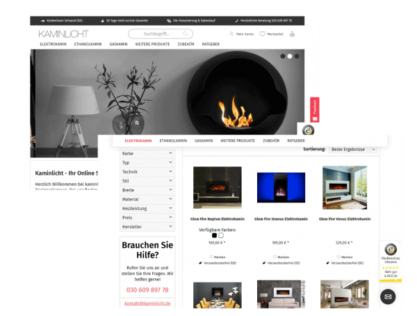 Onlineshop für Elektro-, Ethanol- und Gaskamine auf Shopware-Basis